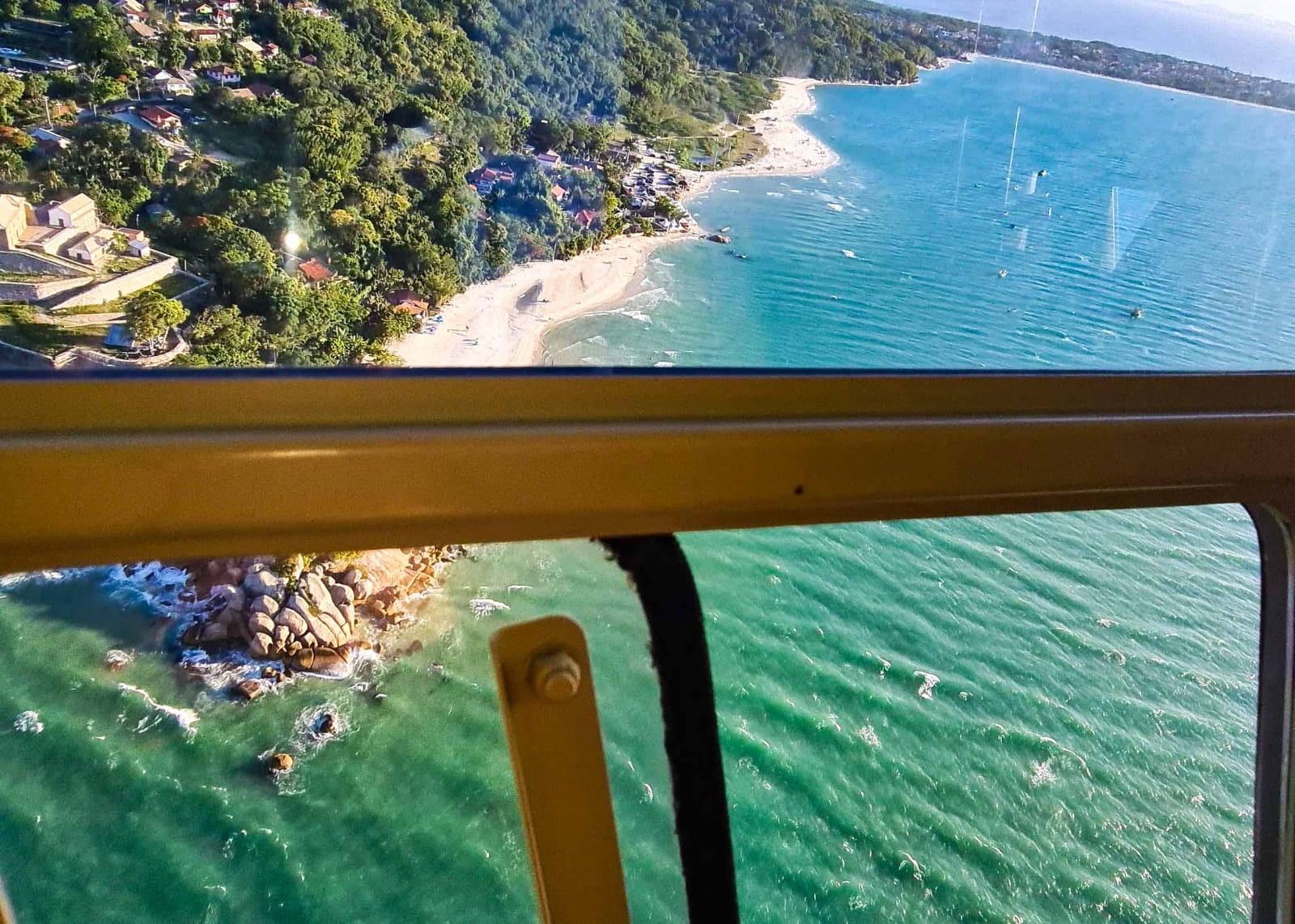 O contraste entre o azul do mar e o verde das montanhas visto do céu é simplesmente hipnotizante.